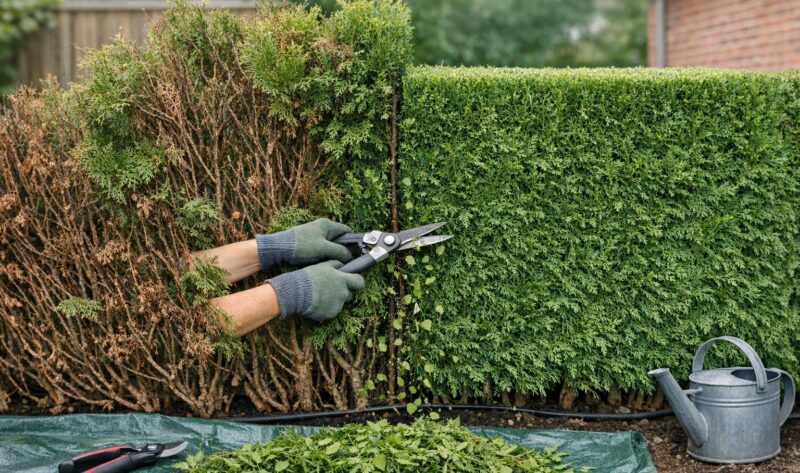 Lær når og hvordan du trygt beskjærer en forsømt tujahekk, unngå vanlige feil, og få praktiske tips om vanning, verktøy og restitusjon.