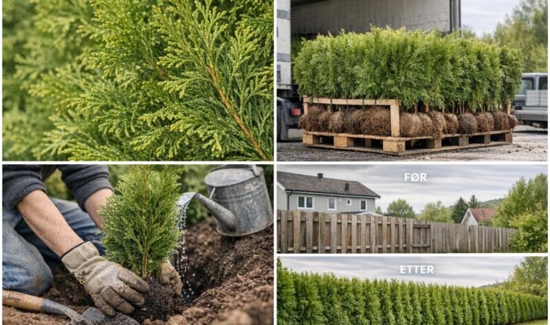 Praktisk guide til å plante og stelle thuja i Norge — valg av høyde, avstand, plantingstid, vanning, klipping og vanlige feil.