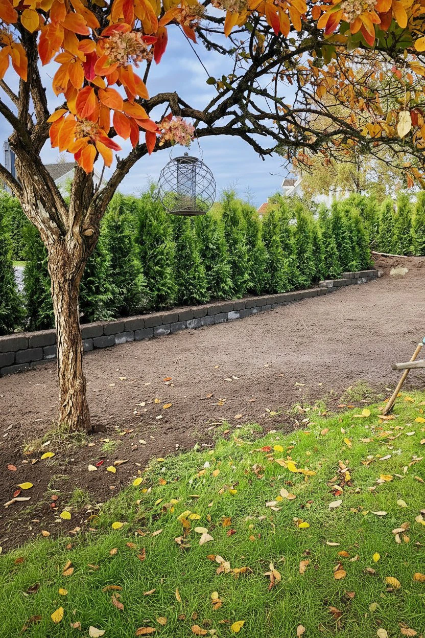 På feltet vokser thujaene tettere og tettere.